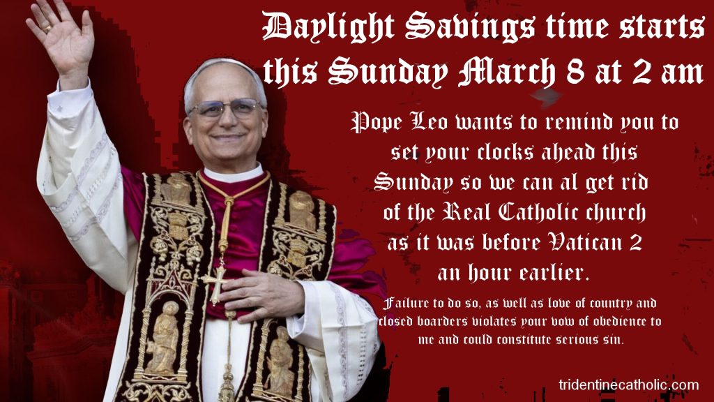 I started Tridentine Catholic for my own selfish reason. That was to keep my parents and their parents faith alive and kicking. The mission gets more difficult every year. The Vandals have once again taken Rome and sacked her of her treasures. A steady down hill trend of popes from John XXIII on down to this current non Catholic meat head Leo. These assassins have trashed Our Lady, have elevated homosexual relations and secular issues such as global warming, illegal immigration, and a one world religion over Catholic doctrine and I for one will have no part of it. There are two main things we can do. 1) seek out the true faith of pre Vatican two and 2 ) don’t fund their anti Catholic religion, that farce Prevost and Bergoglio came up with.