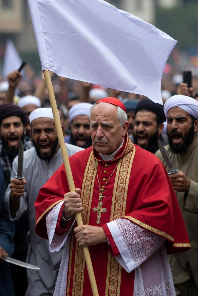 Then we get to Leo revving up all the neo con Catholics that there is no just wars and if you support Trump your going to hell. You don’t want to go to hell you might run into the heretic Leo there. As far as just wars go I kind of wish the Muslims won at LaPanto with the Christian fleet not firing a shot and surrendering immediately claiming they do not want to be involved in an unjust war. That way we would not have Leo in the chair of Peter right now. True we would be in the catacombs like the Parisians in the mosque of Notre Dame but is it any different for many of us now?